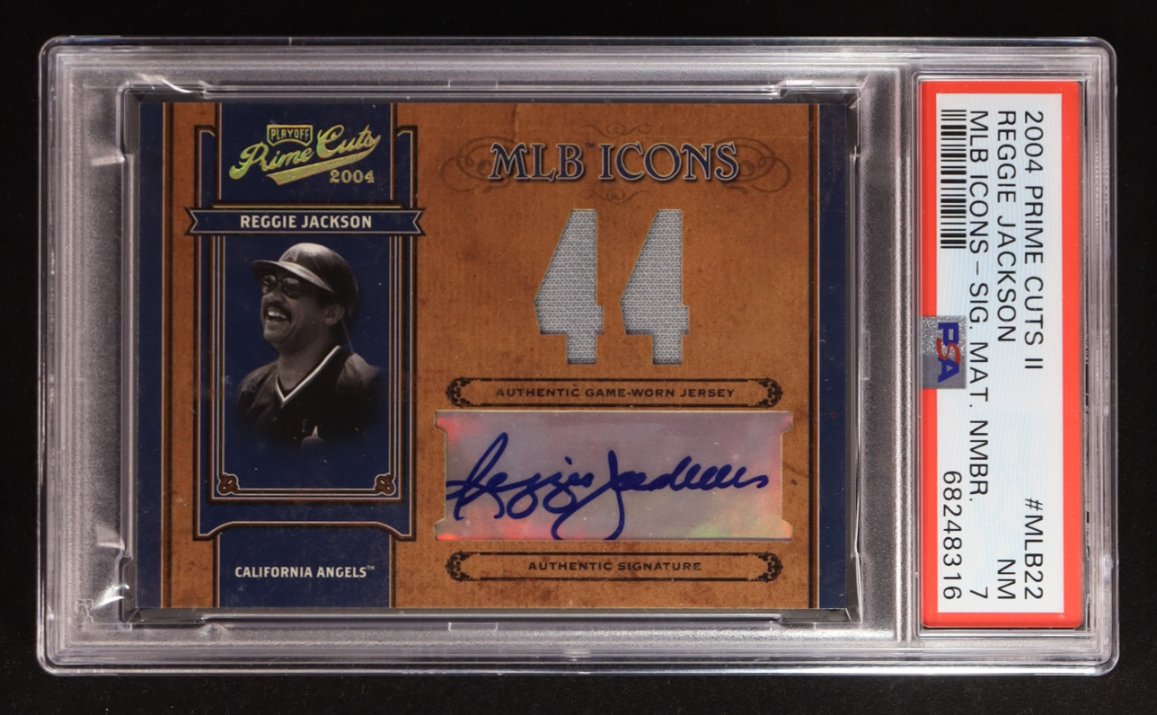 Reggie Jackson 2004 Prime Cuts II MLB Icons Signature Material Number #MLB22 #34/44 (PSA 7)