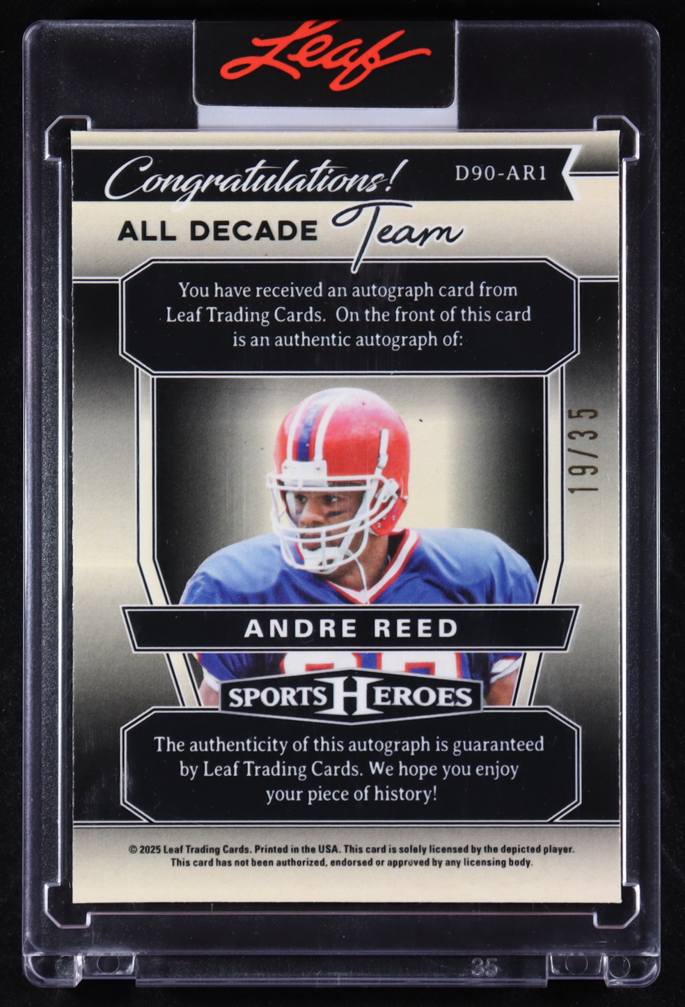 Andre Reed 2025 Leaf Metal Sports Heroes '90s All Decade Team Silver Crystal Autograph #D90-AR1 #19/35