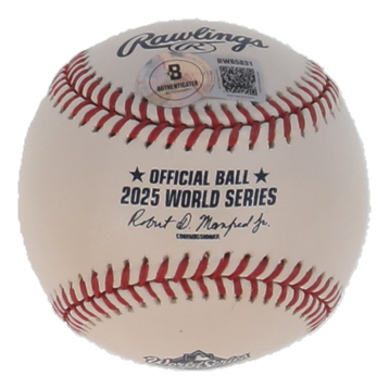 Rawlings Official 2025 World Series Baseball. Hand-signed and inscribed by Tyler Glasnow (Los Angeles Dodgers).