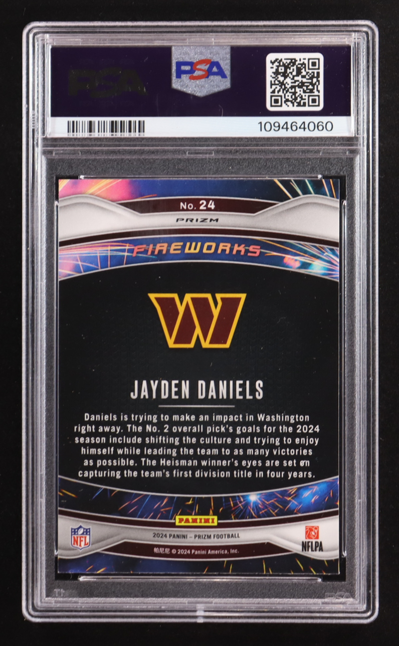 Jayden Daniels 2024 Panini Prizm Fireworks Green Prizm #24 RC (PSA 9)