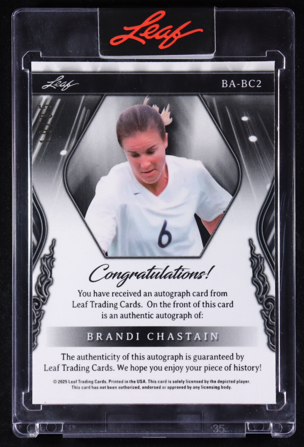 Brandi Chastain 2025 Leaf Metal Sports Heroes Silver Crystal Autograph #BA-BC2 #18/35