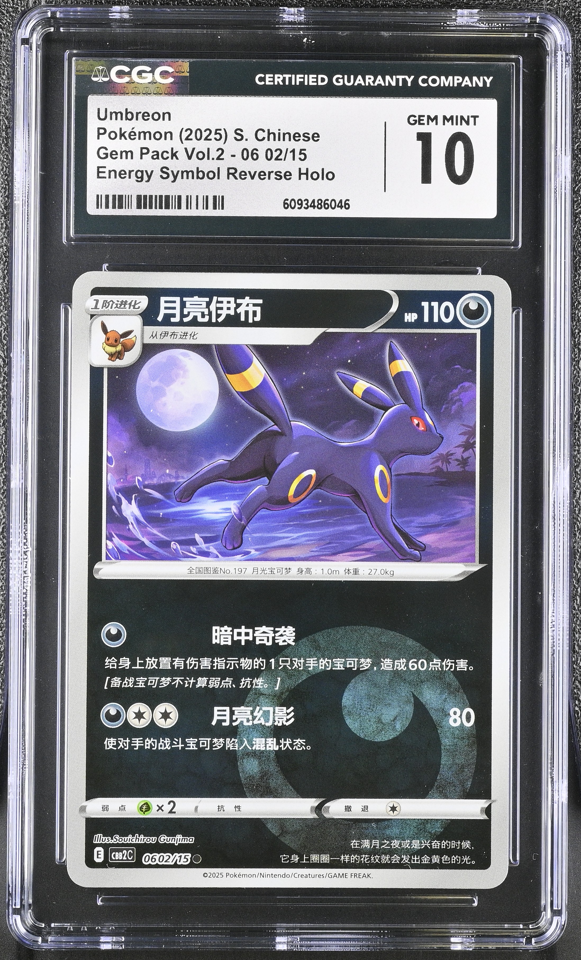 Umbreon 2025 Pokemon TCG Scarlet & Violet Gem Pack Vol.2 Simplified Chinese #0602 Energy Reverse Holo (CGC 10)