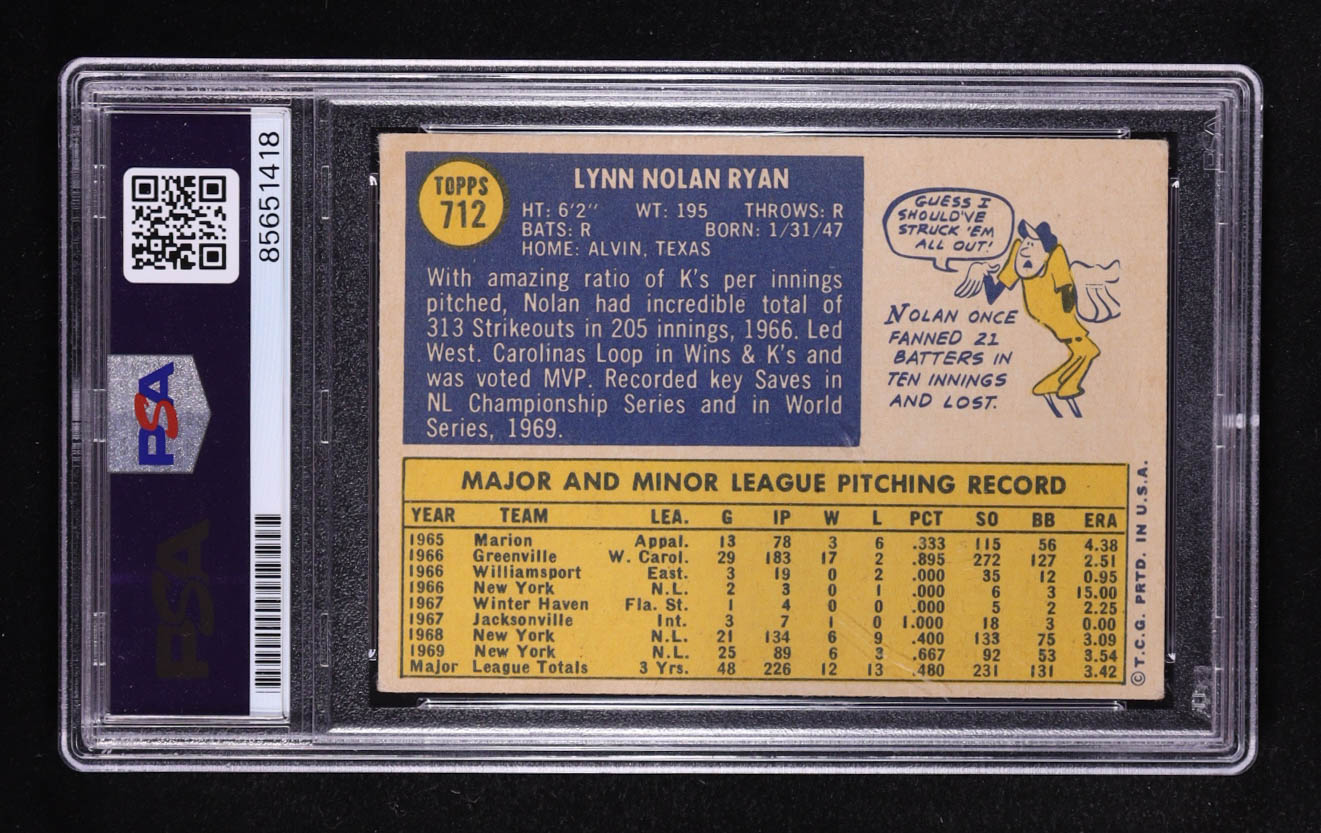 Nolan Ryan Signed 1970 Topps #712 "324 Wins, 5714 K's, 7 No-Hitters" (PSA | Auto 10)