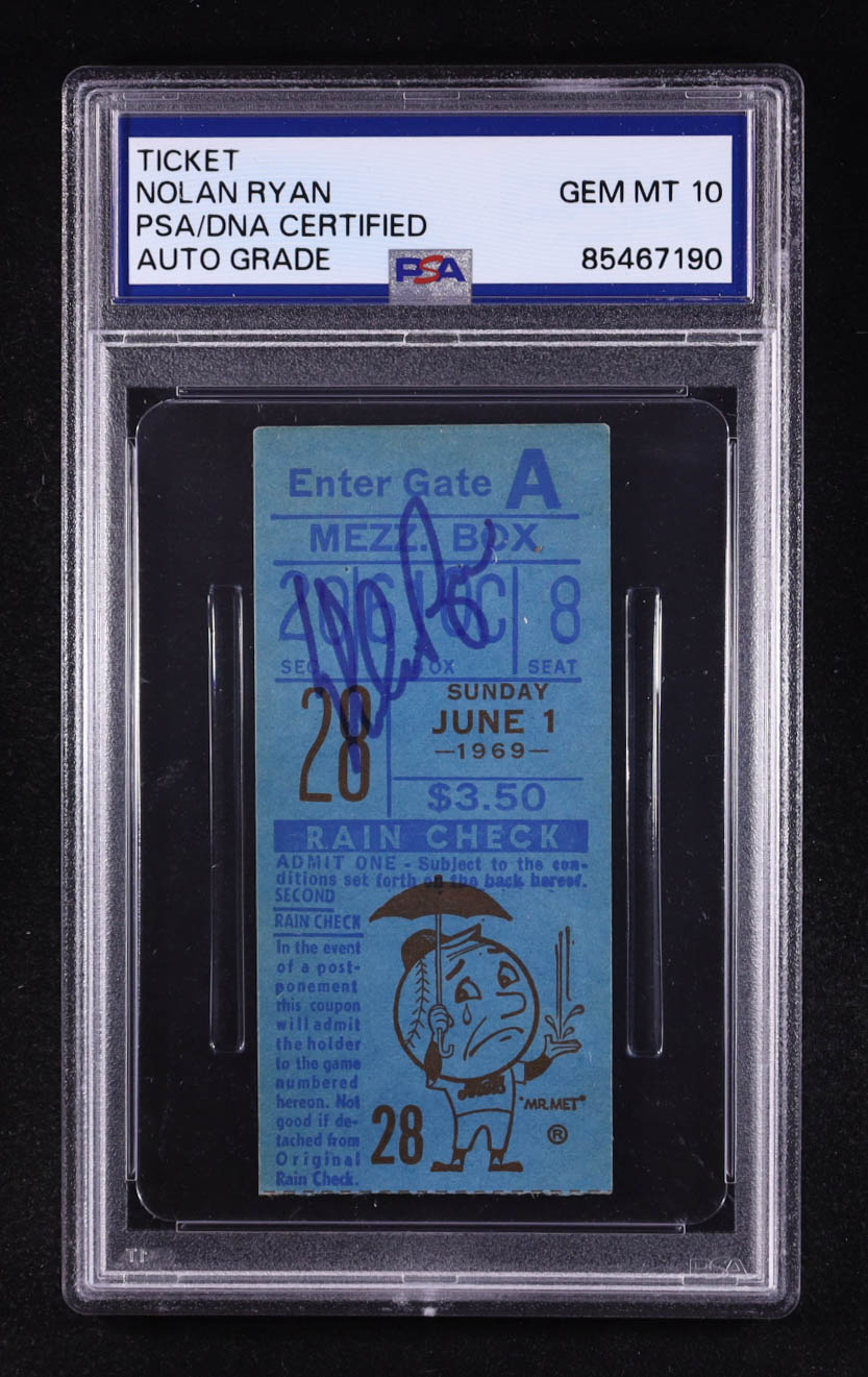 Nolan Ryan Signed 1969 Original Mets Shea Stadium Ticket (PSA | Auto 10)