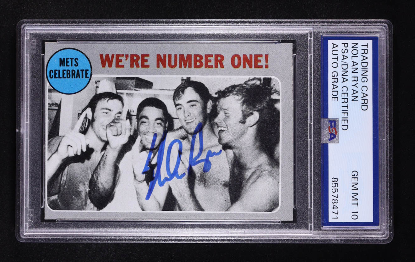 Nolan Ryan Signed 1970 Topps #198 NL Playoff Summary / Mets Celebrate w / Nolan Ryan (PSA | Auto 10)