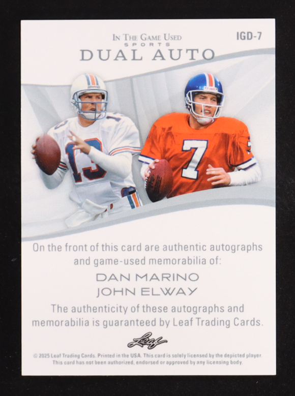 Dan Marino / John Elway 2025 Leaf ITG Sports Game-Used Memorabilia Dual Autographs #IGD-7 #6/7