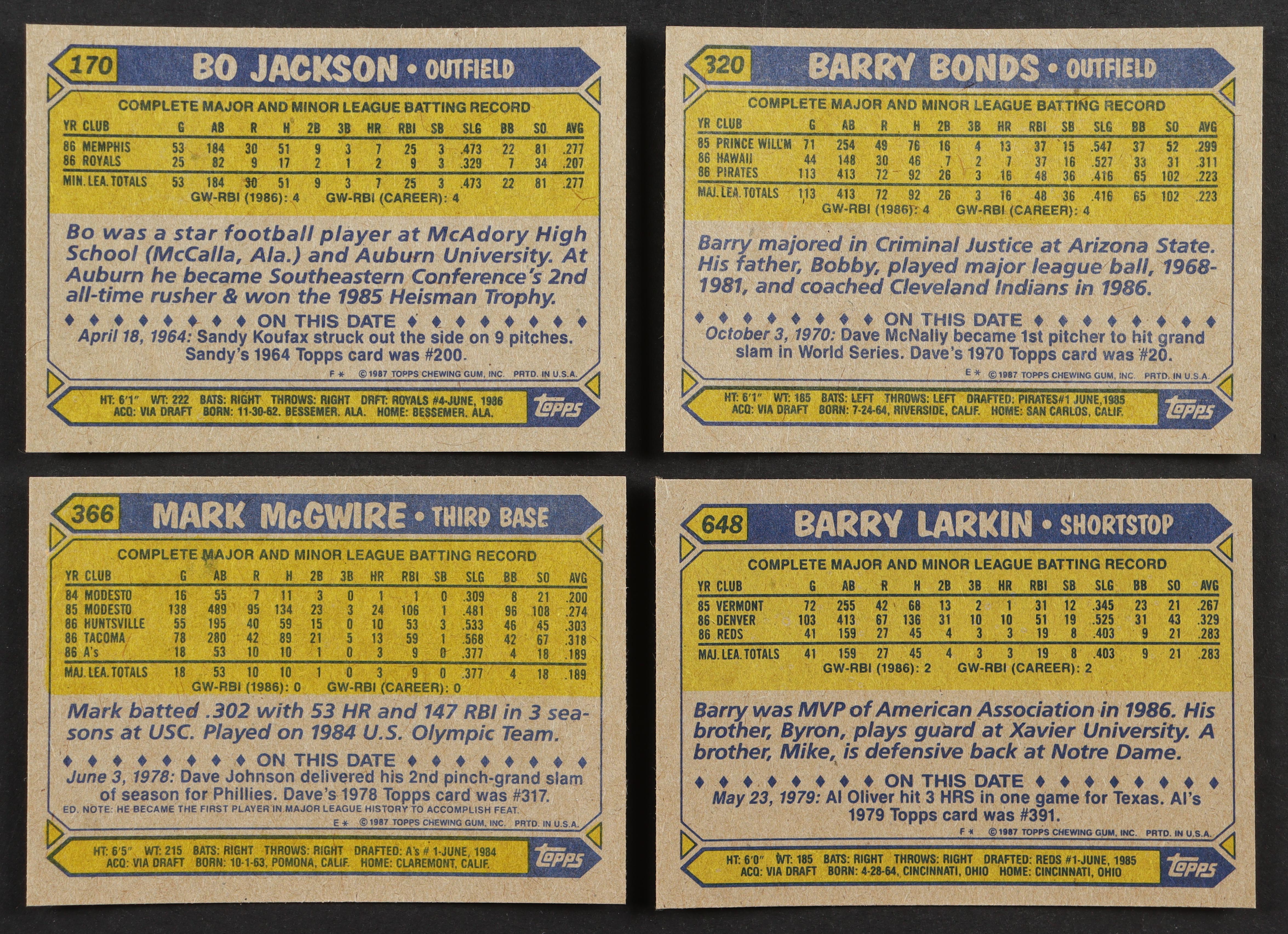 1987 Topps Baseball Complete Set of (792) Cards with Bo Jackson #170 RC, Barry Bonds #320 RC, Mark McGwire #366 RC, Barry Larkin #648 RC