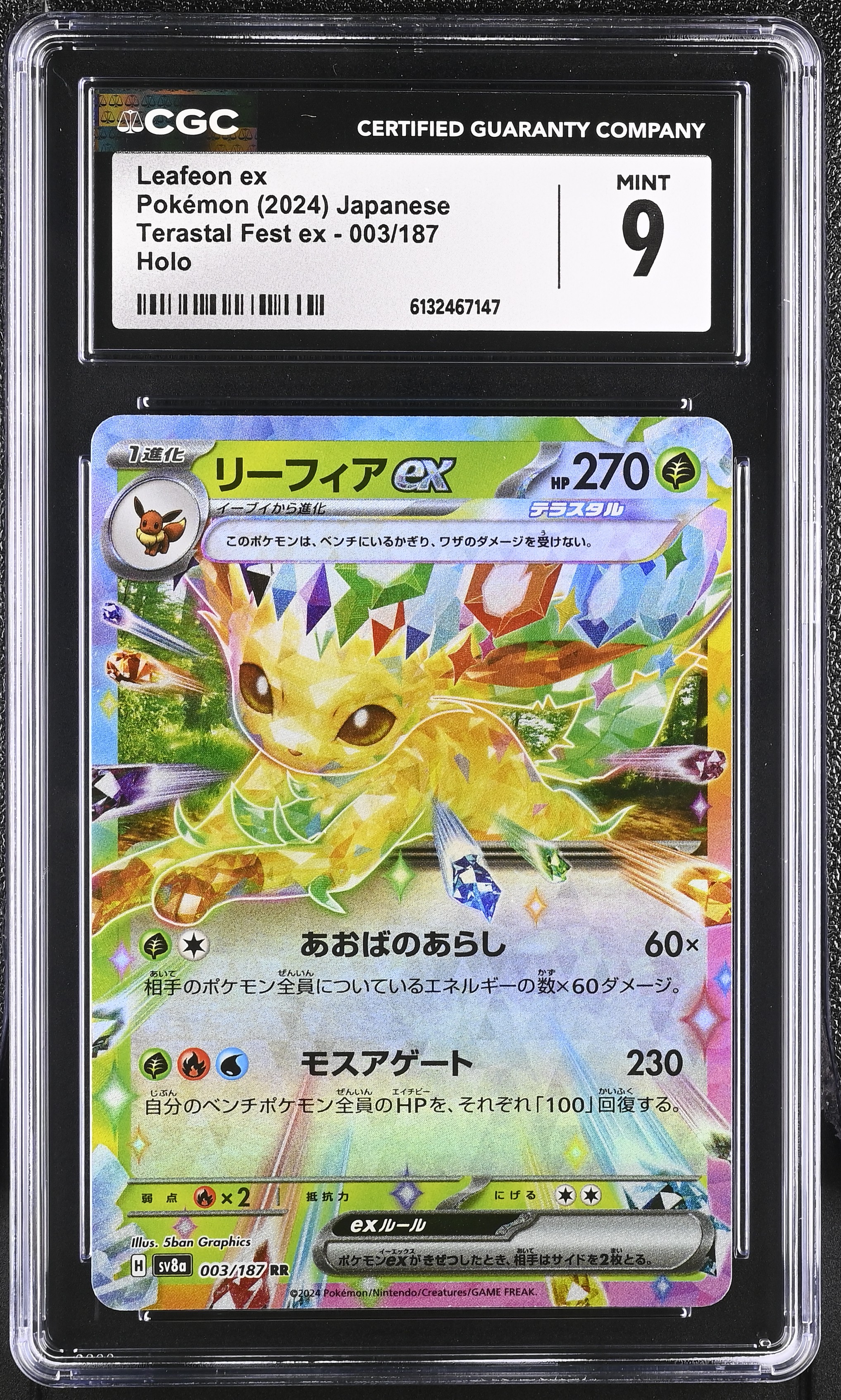 Leafeon ex 2024 Pokemon Card Game Scarlet & Violet Terastal Festival ex High Class Expansion Japanese #003 (CGC 9)