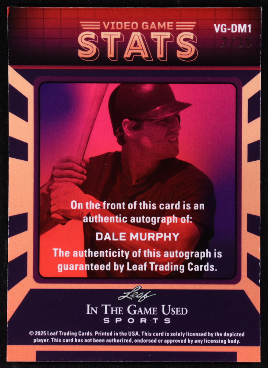 Dale Murphy 2025 Leaf in the Game Used Video Game Stats Autograph Prismatic Gold #VG-DM1 #2/35