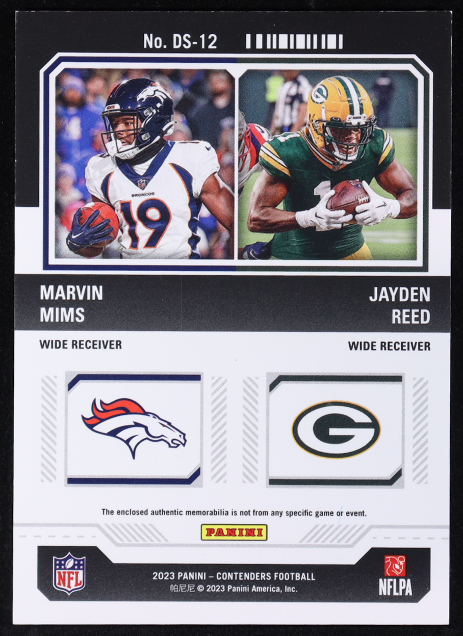 Marvin Mims / Jayden Reed 2023 Contenders Rookie Ticket Dual Swatches #DS-12 RC