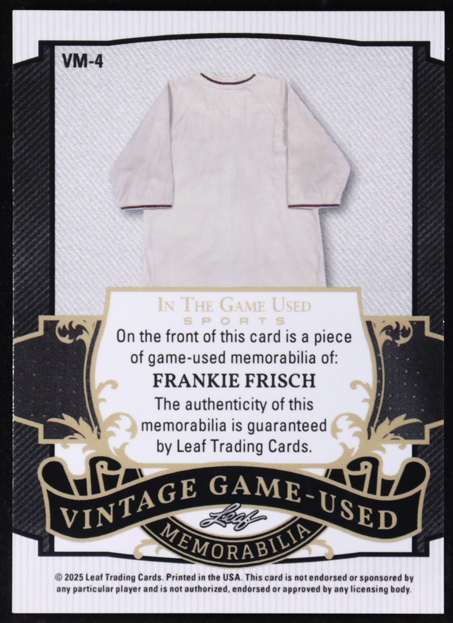 Frankie Frisch 2025 Leaf in the Game Used Vintage Game-Used Memorabilia Purple Holo #VM4 #3/5