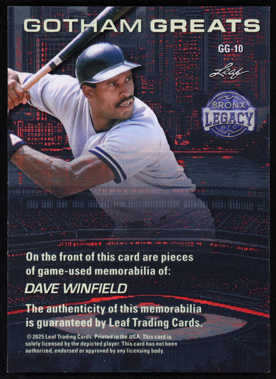 Dave Winfield 2025 Leaf A Bronx Legacy Gotham Greats Bronze Holo Triple Game-Used Bat Relic #GG-10 #29/50