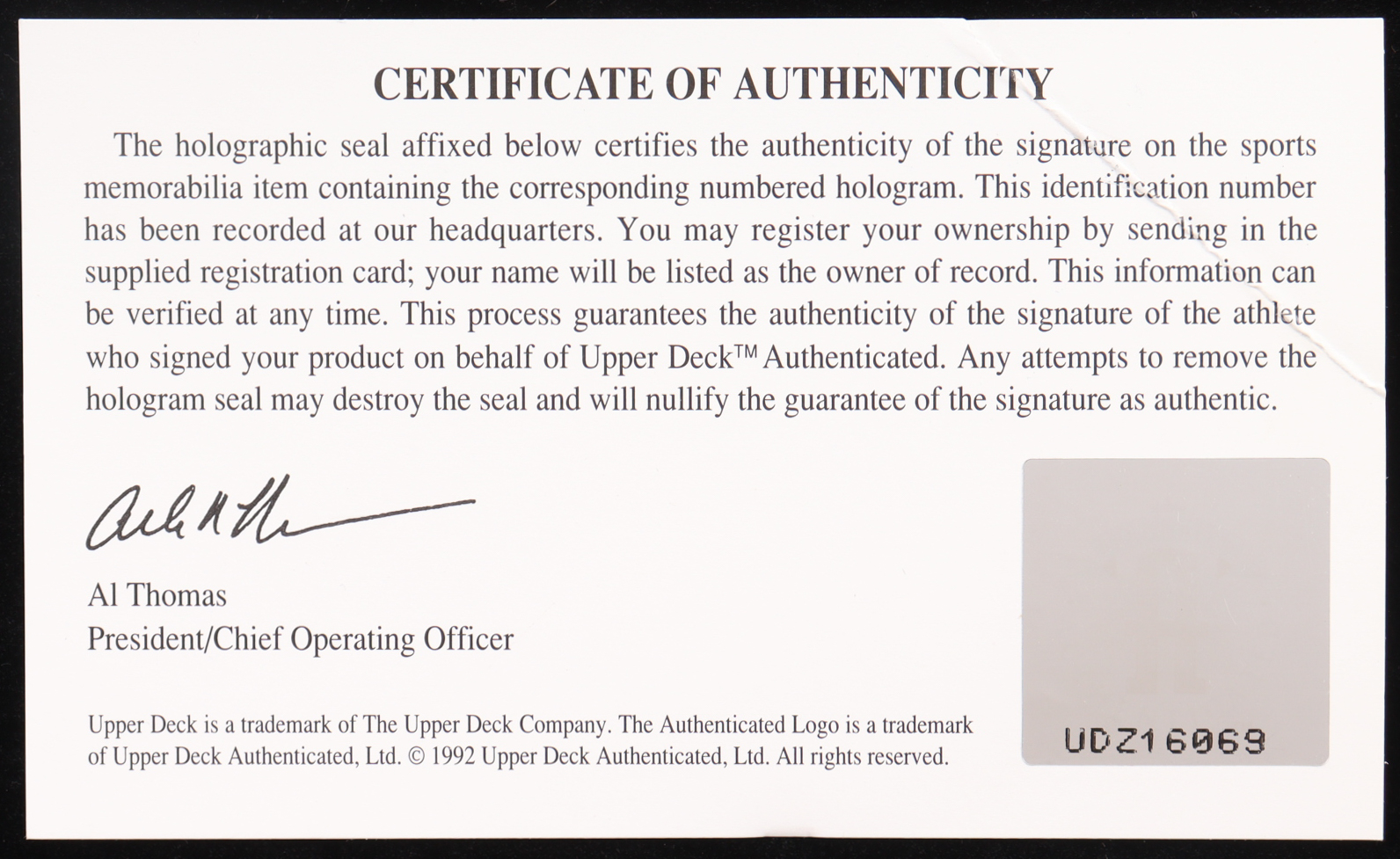 The autograph(s) includes an official Upper Deck Authenticated (UDA) hologram and matching COA for authenticity purposes.
