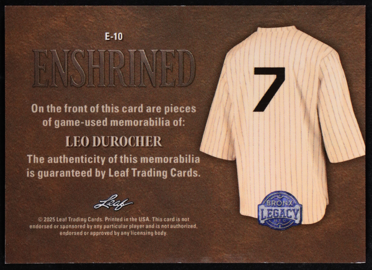 Leo Durocher 2025 Leaf A Bronx Legacy Enshrined Purple Triple Game-Used Jsy Relic #E-10 #8/8