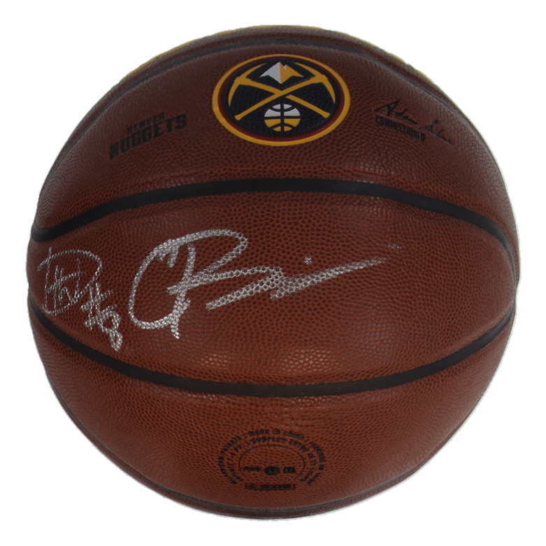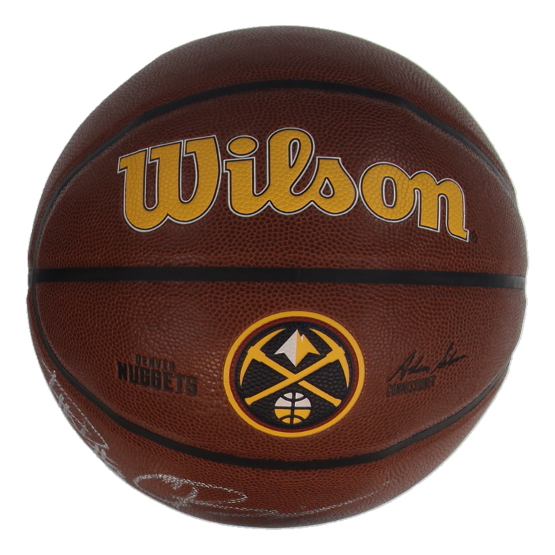 Wilson Denver Nuggets Logo NBA Basketball. Hand-signed by Christian Braun and Peyton Watson. Please note, there are stains throughout the basketball.