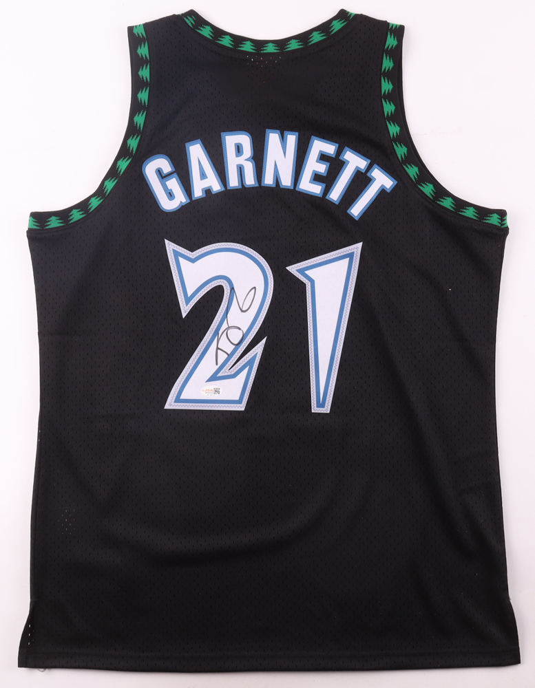 Mitchell & Ness jersey with everything pressed on, size L. Hand-signed by Kevin Garnett (Minnesota Timberwolves, HOF).