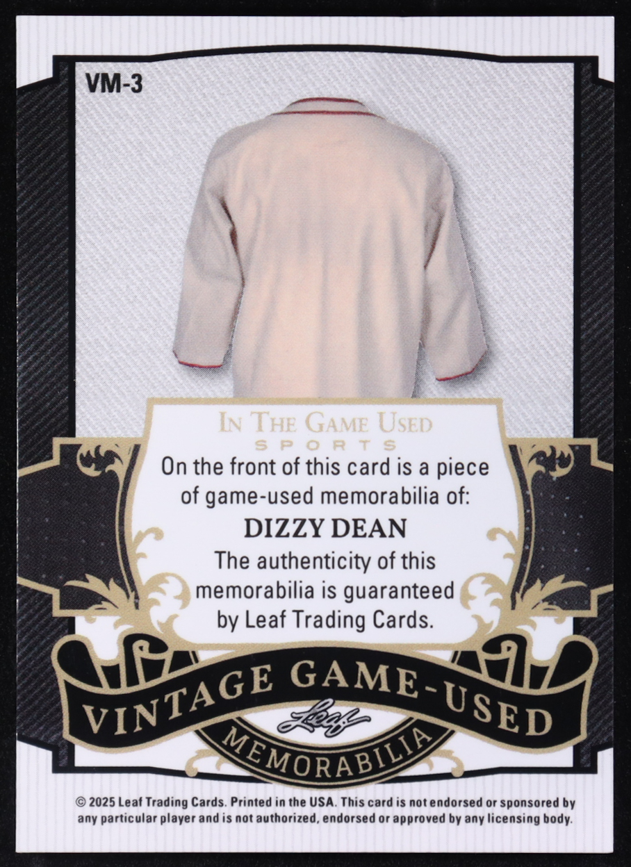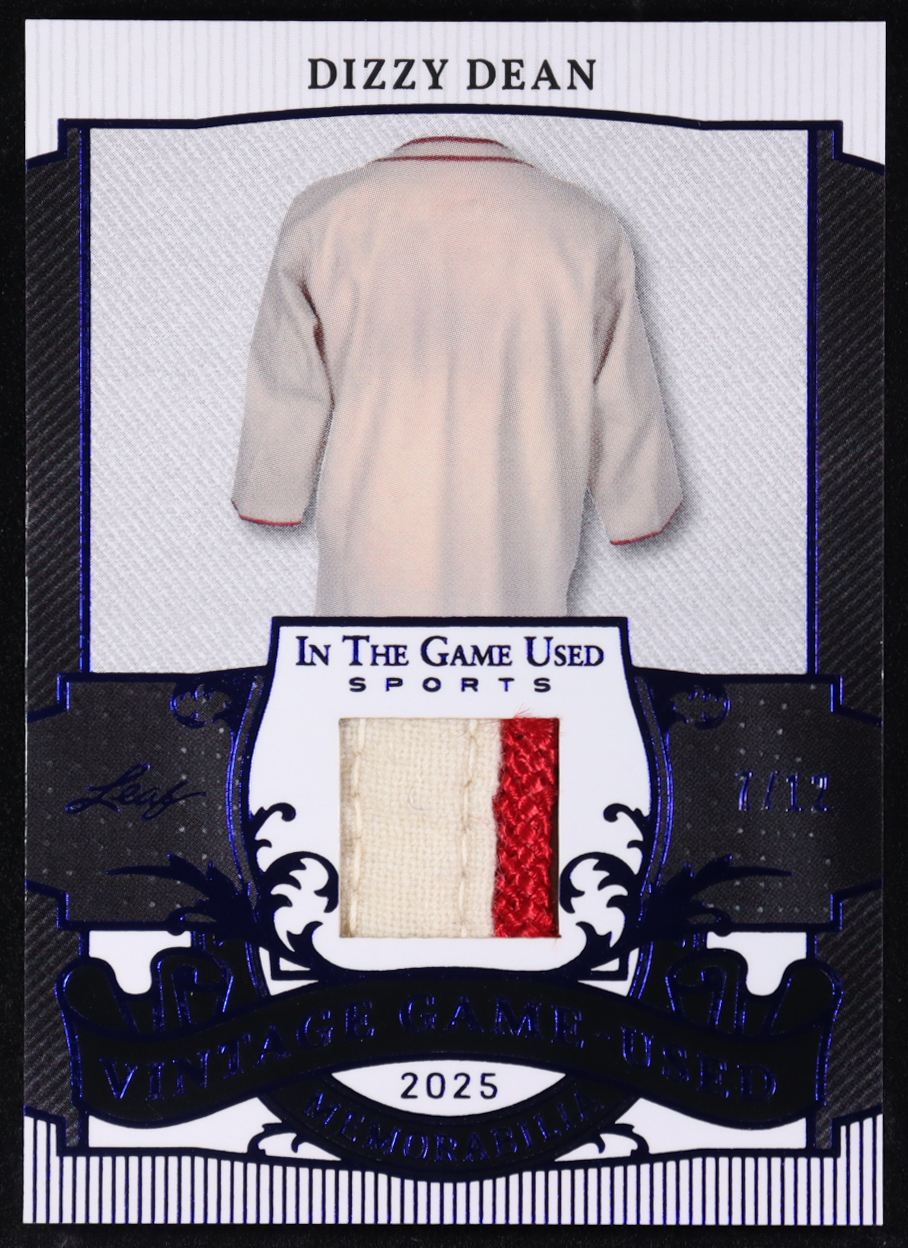 Dizzy Dean 2025 Leaf in the Game Used Vintage Game-Used Memorabilia Blue Holo #VM3 #7/12