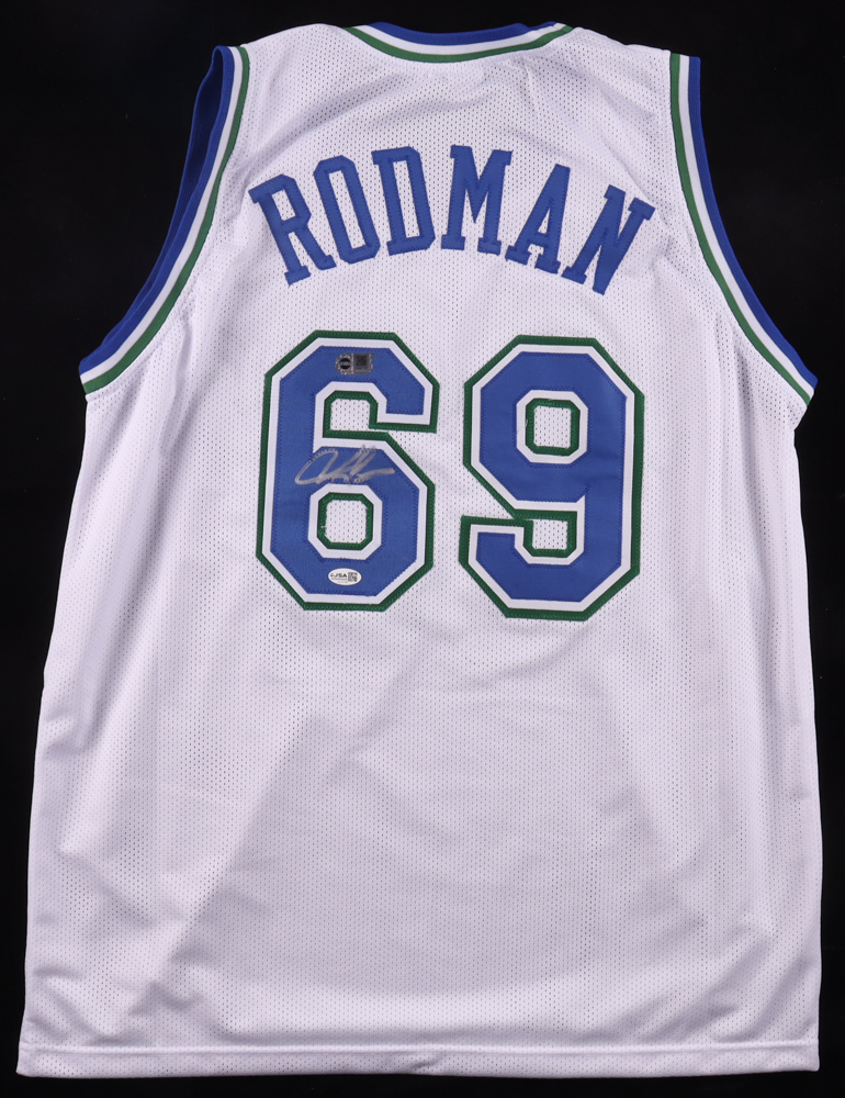 Custom jersey. Everything is sewn on, size XL. Hand-signed by Dennis Rodman (HOF).