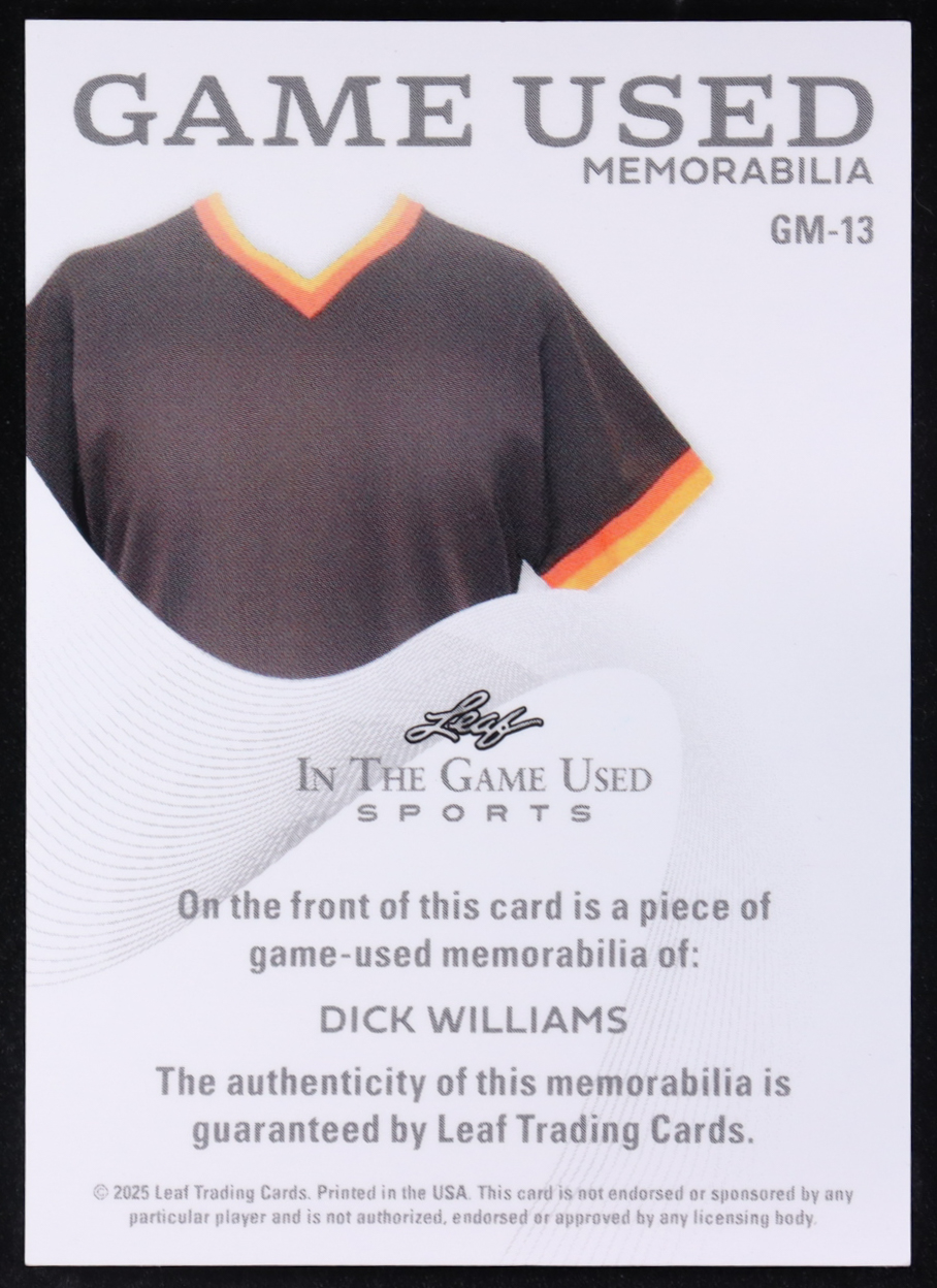 Dick Williams 2025 Leaf in the Game Used Game-Used Memorabilia Sapphire #GM-13 #8/15