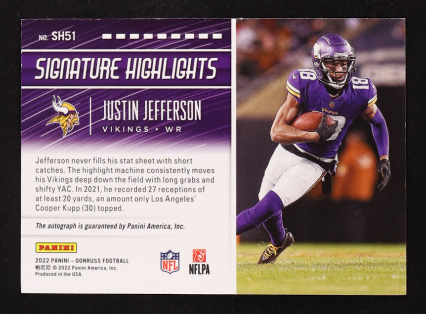 Justin Jefferson 2022 Panini Donruss Signature Highlights Cracked Ice #SH51