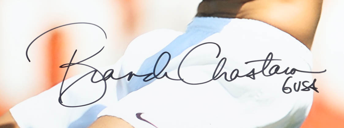 Photo measures 16" x 20" in size. Hand-signed and inscribed by Brandi Chastain (HOF).