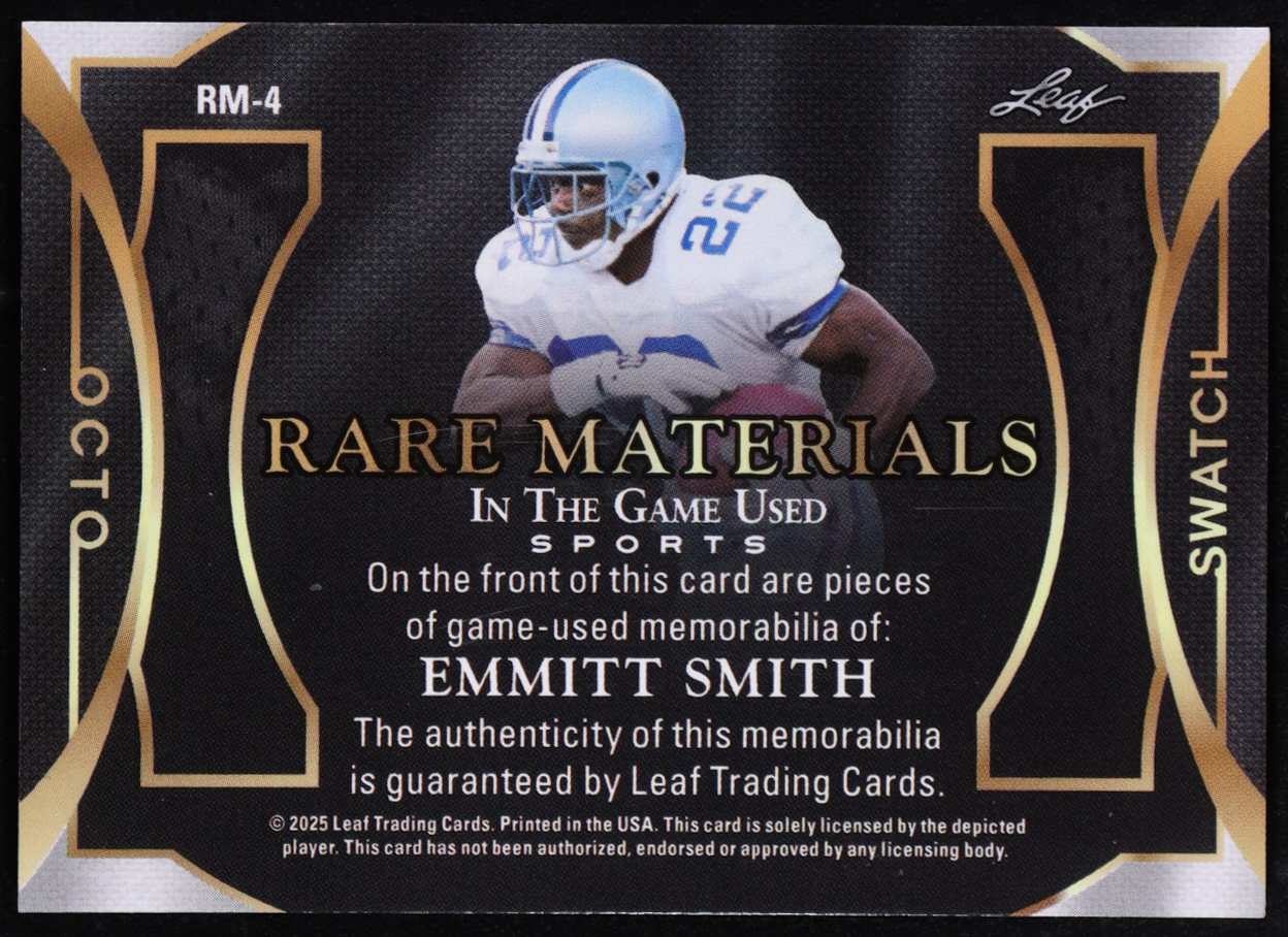 Emmitt Smith 2025 Leaf in the Game Used Rare Materials Game-Used Octo Memorabilia Purple #RM-4 #3/6