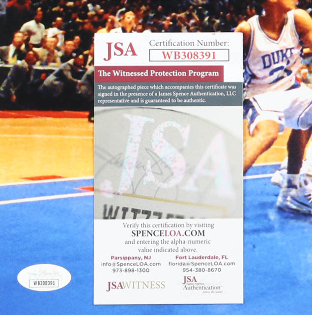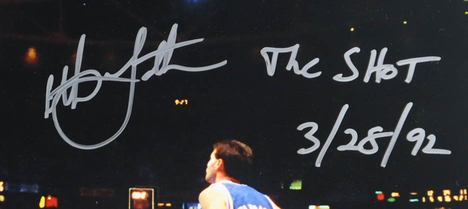 Photo measures 16” x 20” in size and has been hand-signed by Christian Laettner.