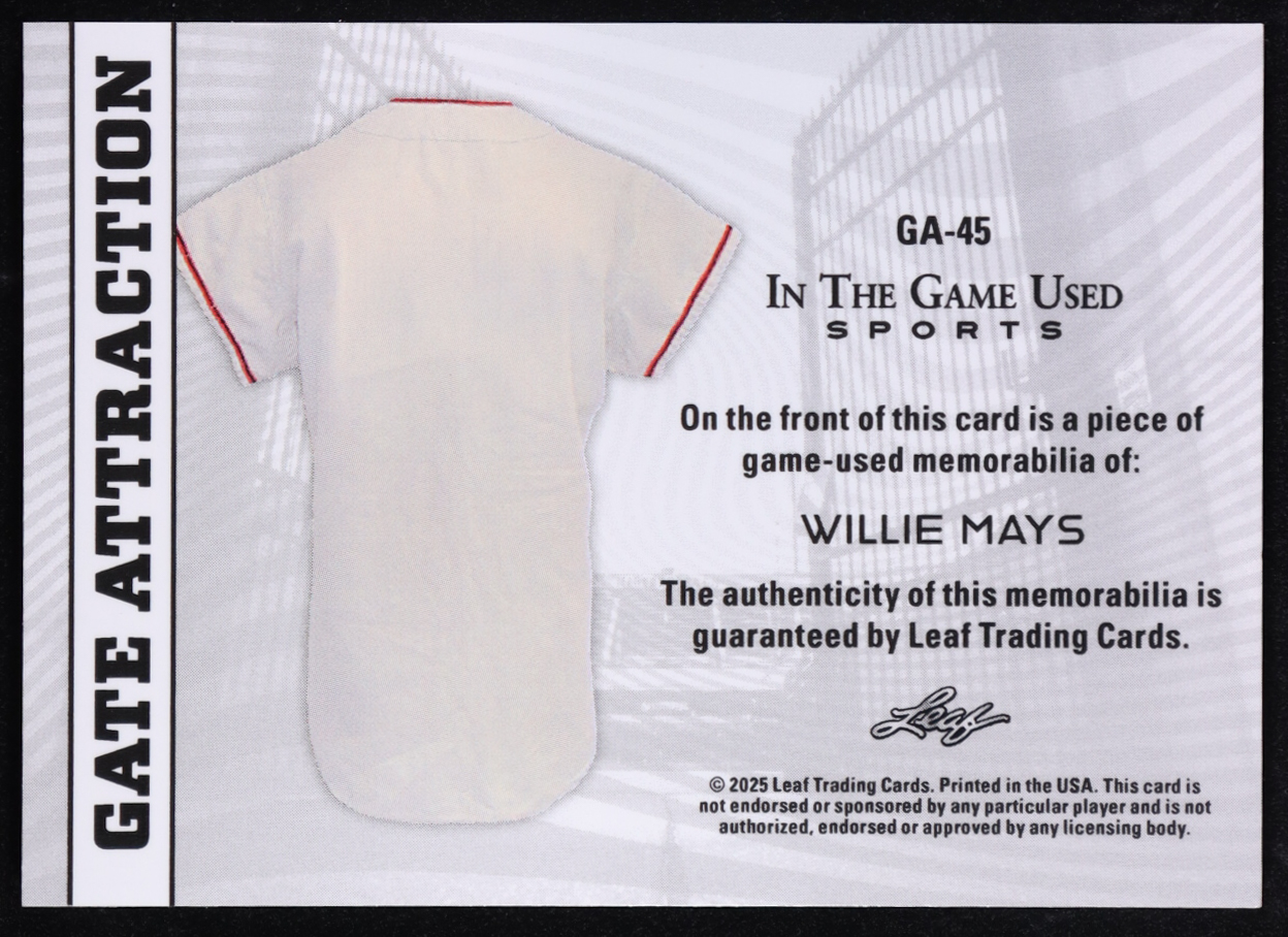 Willie Mays 2025 Leaf In The Game Used Gate Attraction Purple Holo #GA-45 #5/6