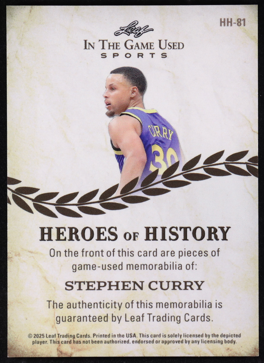 Stephen Curry 2025 Leaf ITG Used Sports Heroes Of History Triple Relic Purple Holo #HH81 #4/6