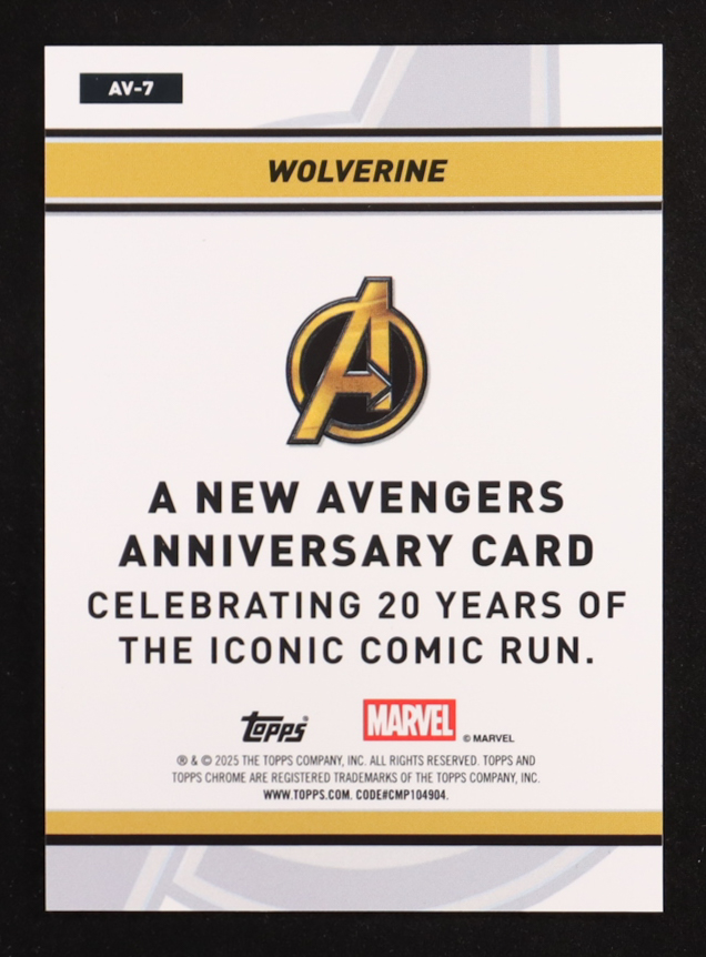 Wolverine 2025 Topps Chrome Marvel New Avengers 20th Anniversary Gold Wave #AV7 #12/50
