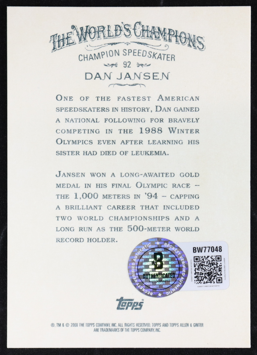 Dan Jansen Signed 2008 Topps Allen and Ginter #92 (Beckett)