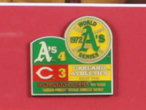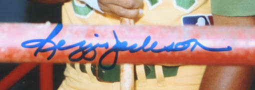 Custom frame measures approximately 13" x 16" in size that features an 8" x 10" photo that has been hand-signed by Reggie Jackson (Oakland Athletics, HOF). Display also includes a 1973 Oakland Athletics World Series Pin. Please see photos for details regarding the condition of the item.