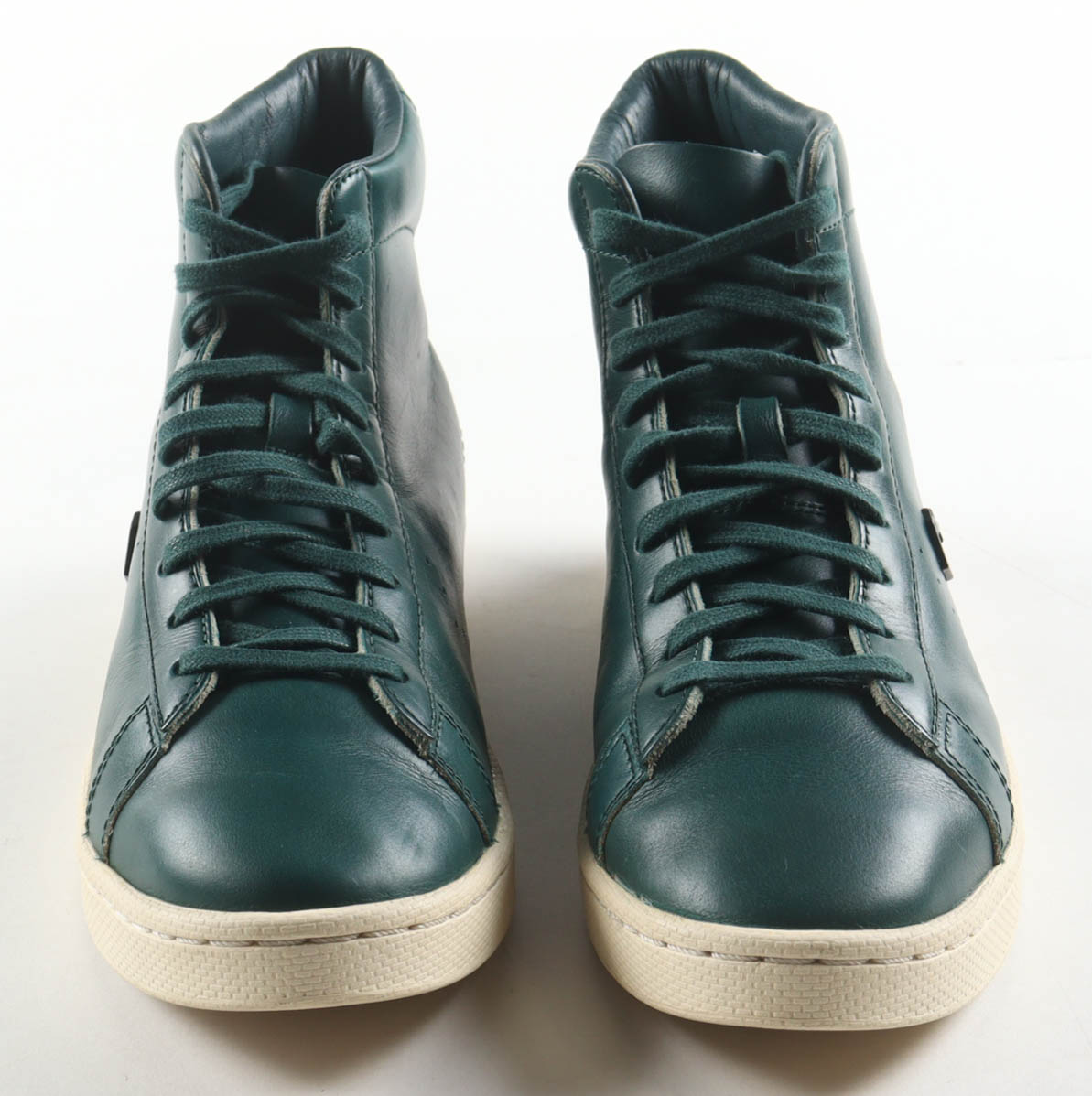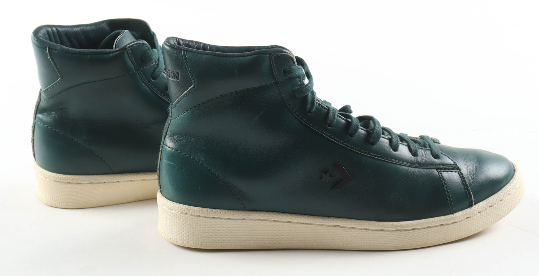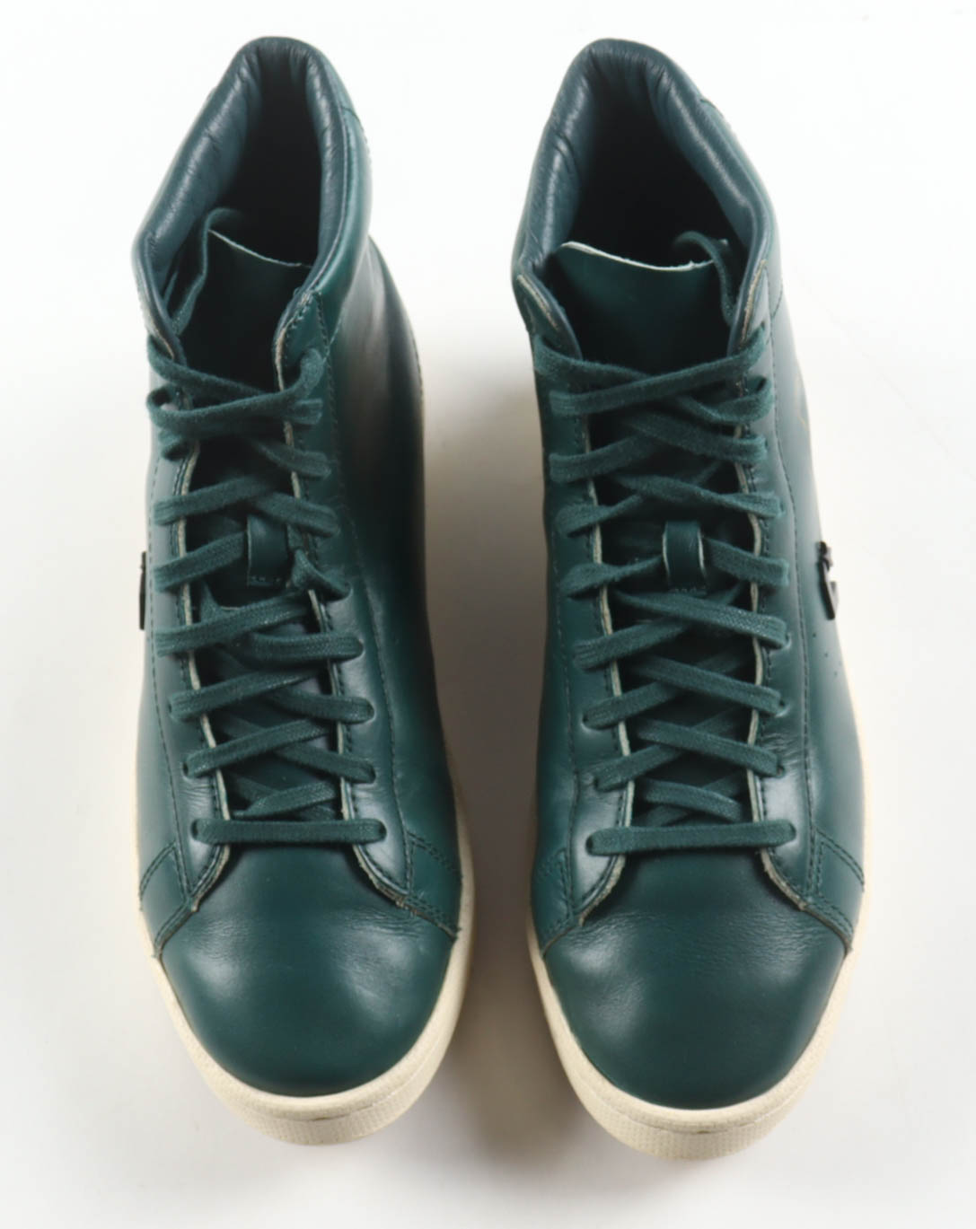 Pair of (2) Horween Leather Co. x Converse Pro Leather High Basketball Shoes. Hand-signed by Larry Bird (Boston Celtics, HOF). Display case is included as shown. Please note, signature has been smudged.