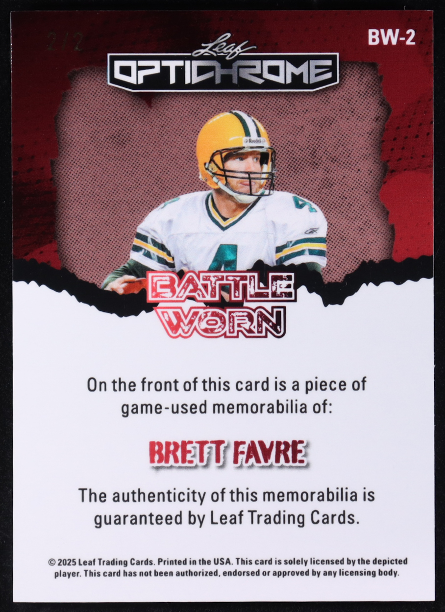 Brett Favre 2025 Leaf Optichrome Battle Worn Red Game-Used #BW2 #2/2