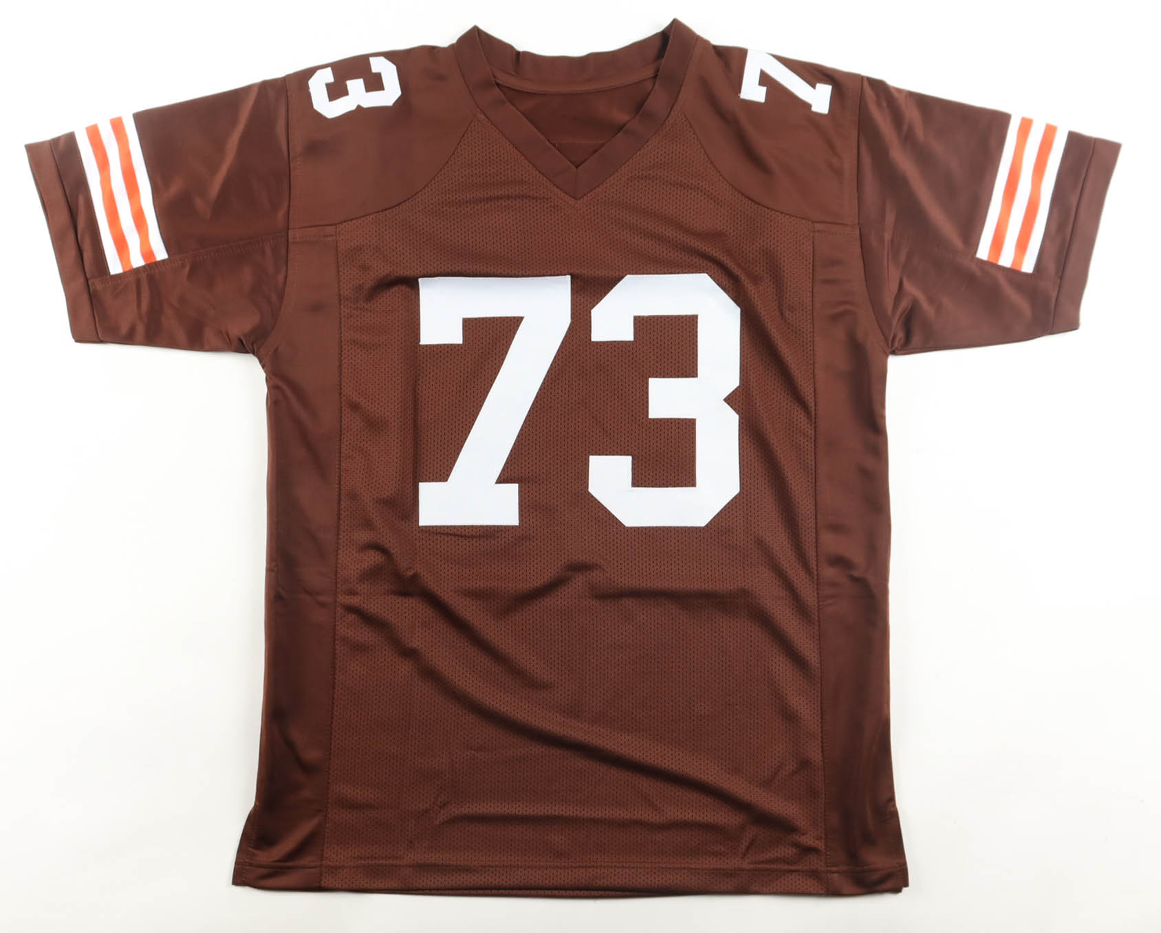 Custom jersey with everything sewn on, size XL. Hand-signed by Joe Thomas (HOF).