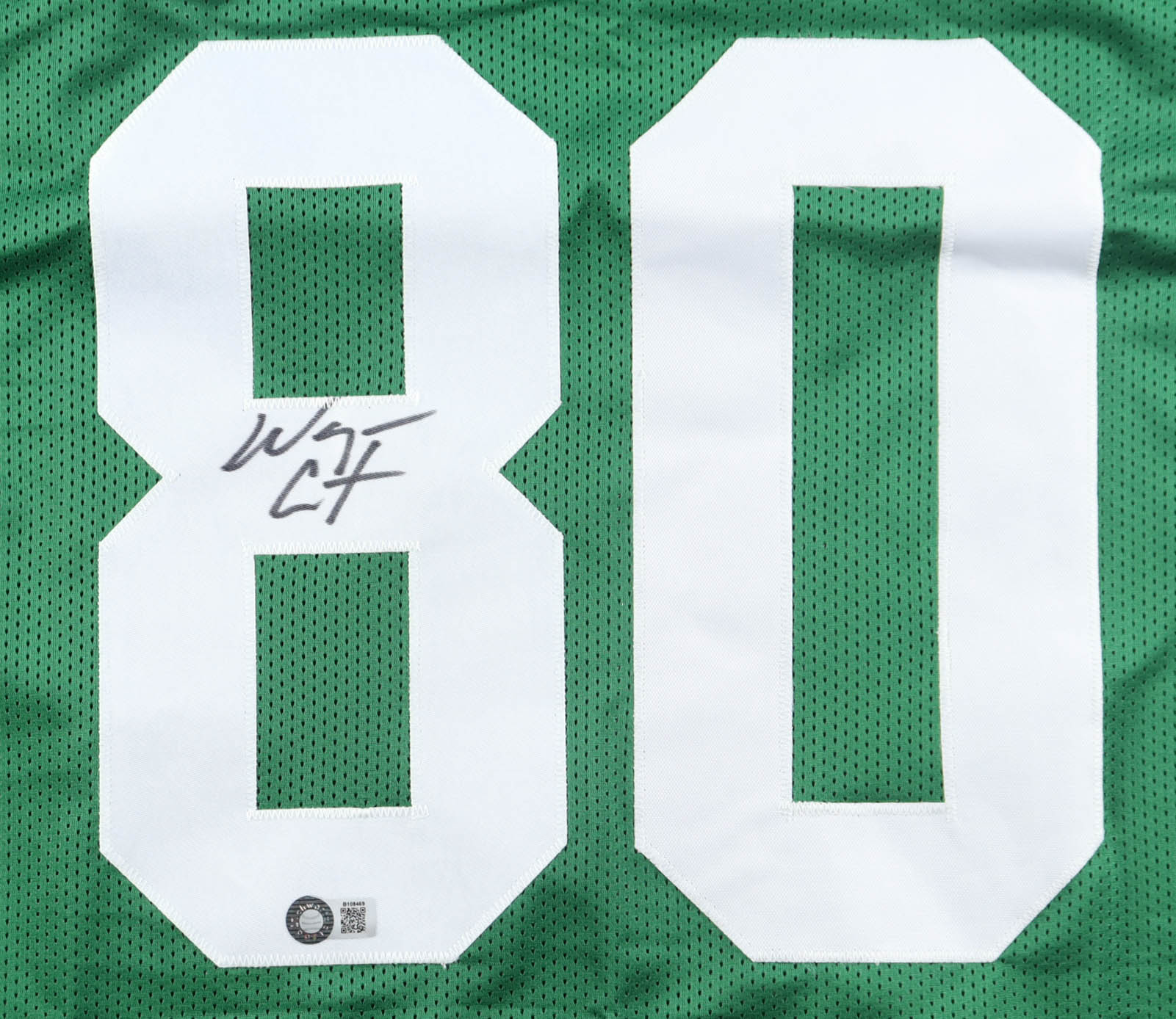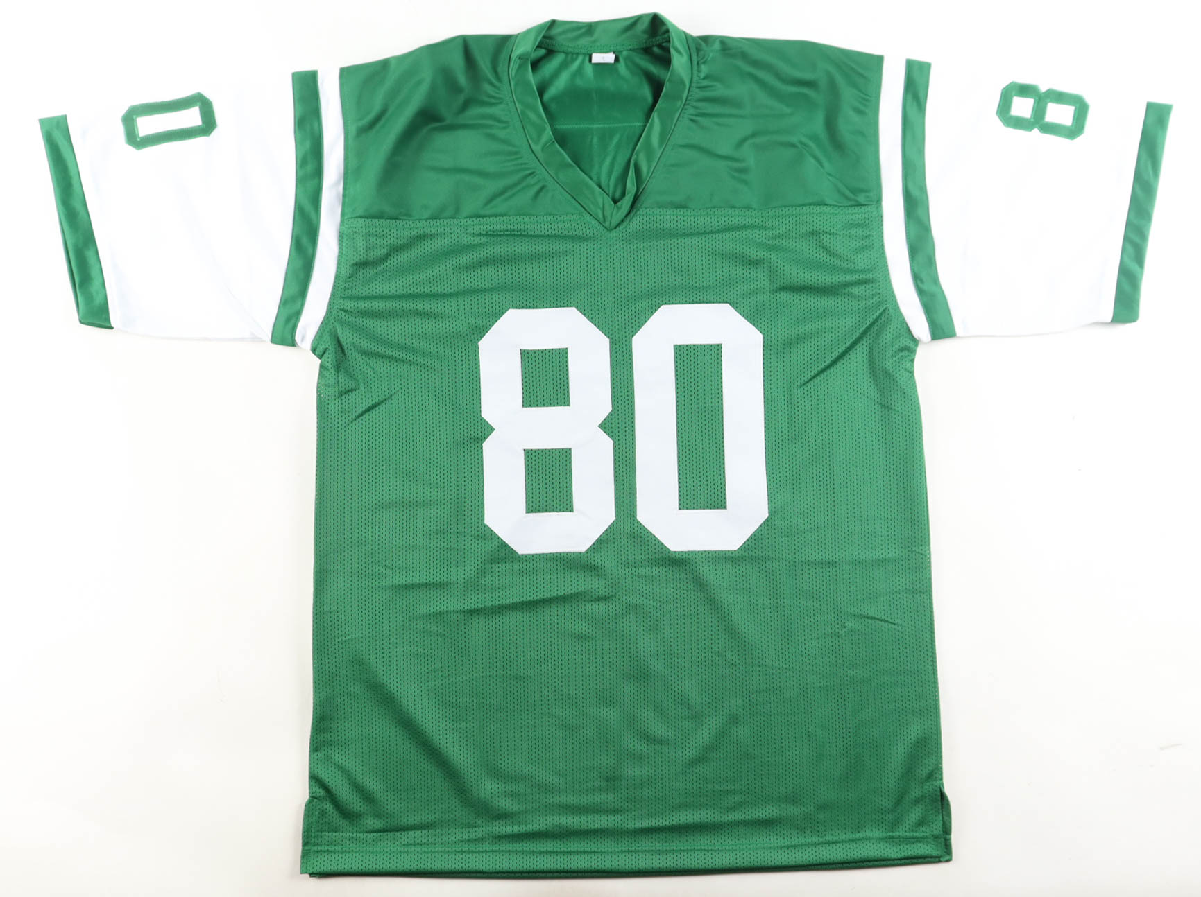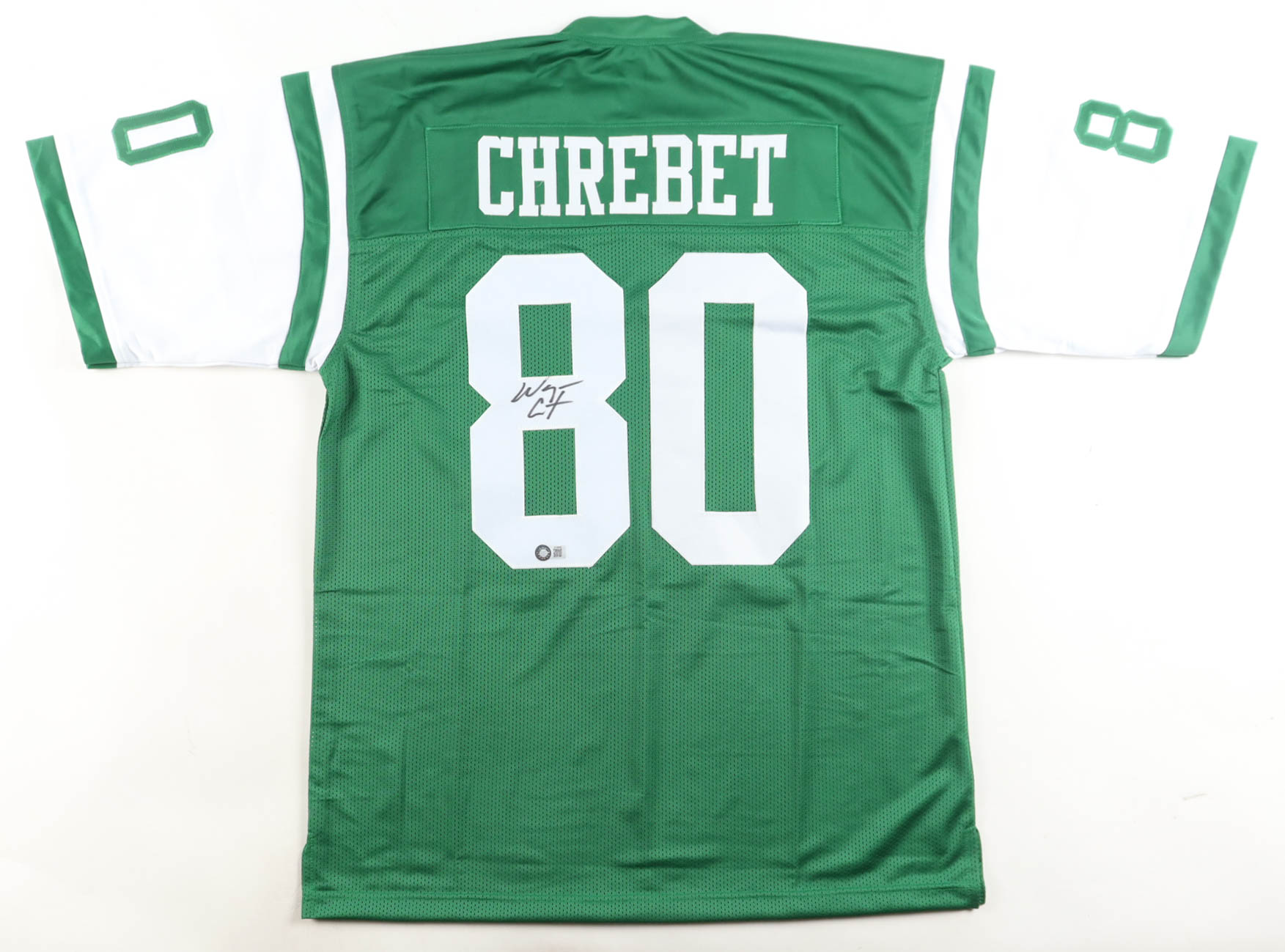 Custom jersey with everything sewn on, size XL. Hand-signed by Wayne Chrebet.