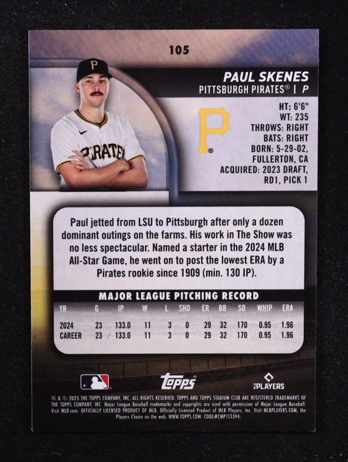 Paul Skenes 2025 Stadium Club Light Blue #105