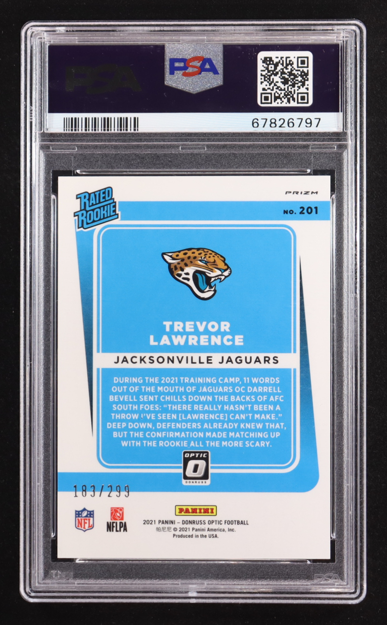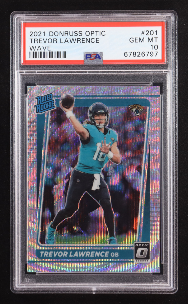 Trevor Lawrence 2021 Panini Donruss Optic Wave #201 RC #183/299 (PSA 10)