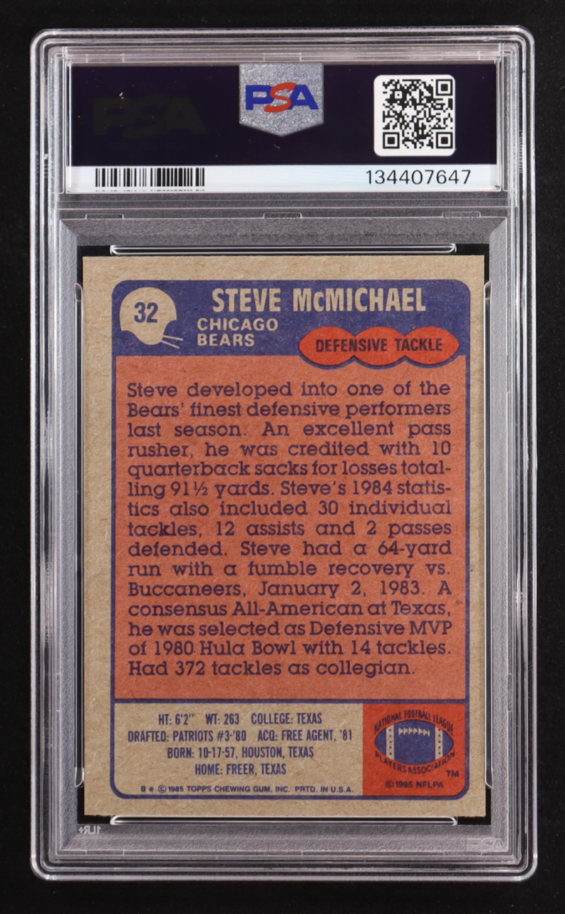 Steve McMichael 1985 Topps #32 RC (PSA 8)