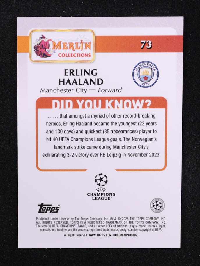 Erling Haaland 2024-25 Merlin UEFA Club Competitions Magenta Atomic #73 #123/125