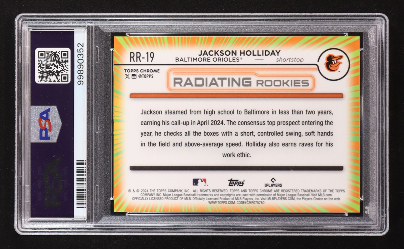 Jackson Holliday 2024 Topps Chrome Radiating Rookies #RR-19 RC (PSA 10)