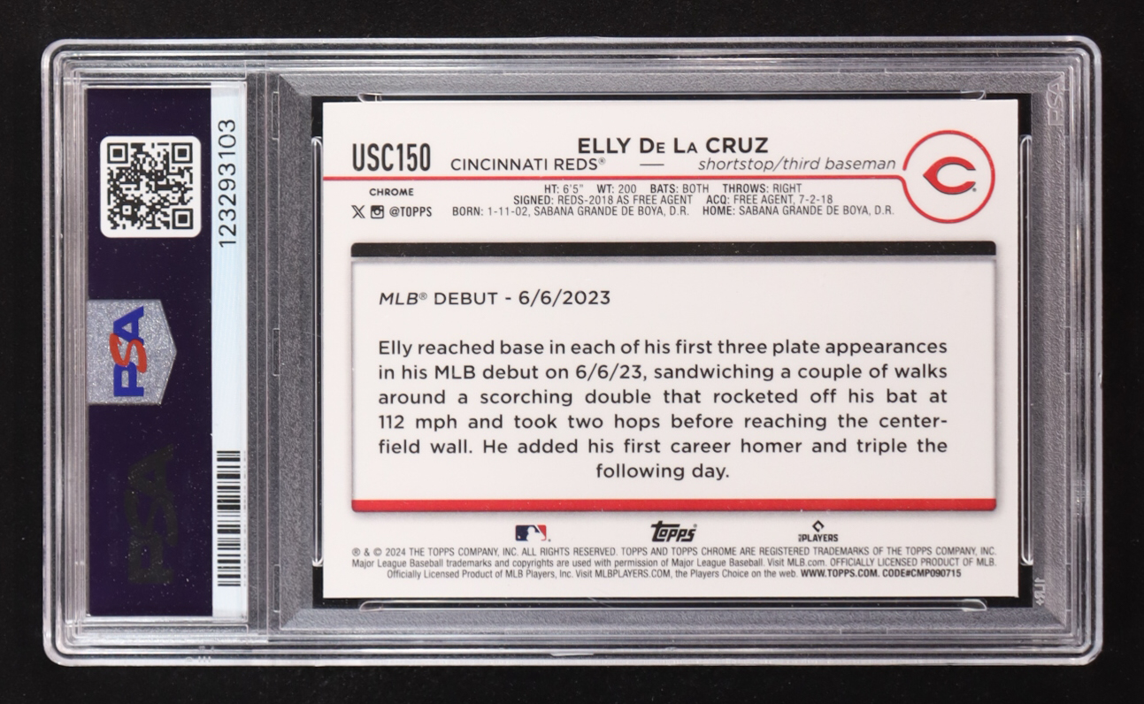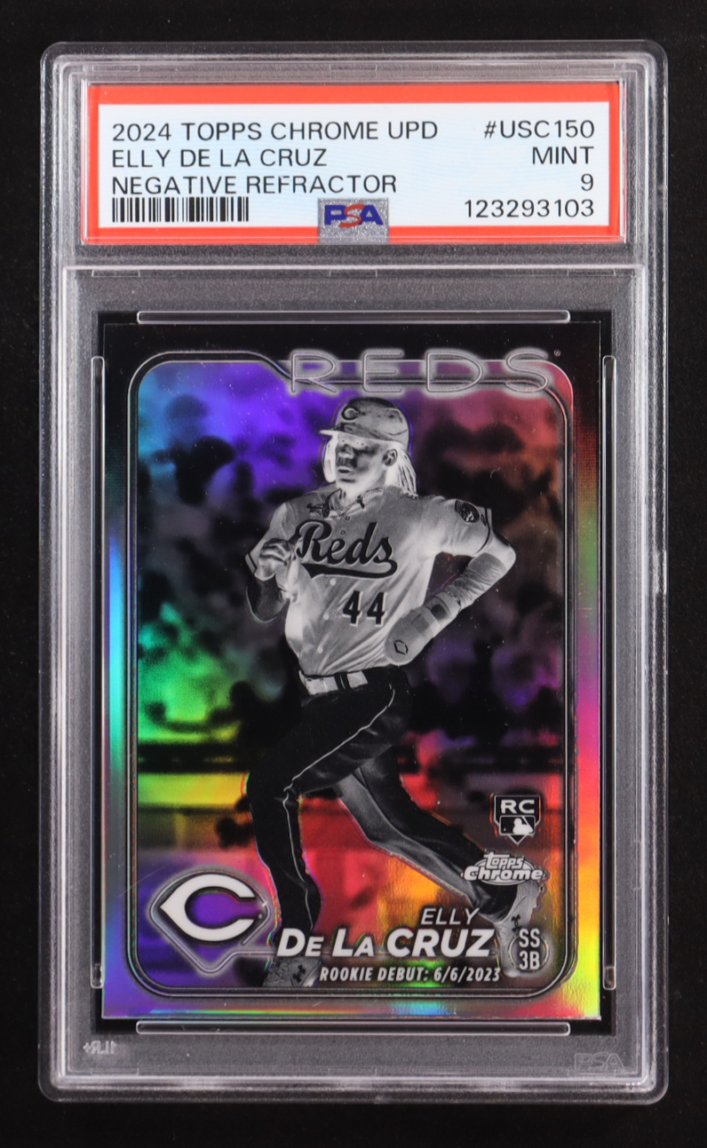 Elly De La Cruz 2024 Topps Chrome Update Negative Refractor #USC-150 RC (PSA 9)