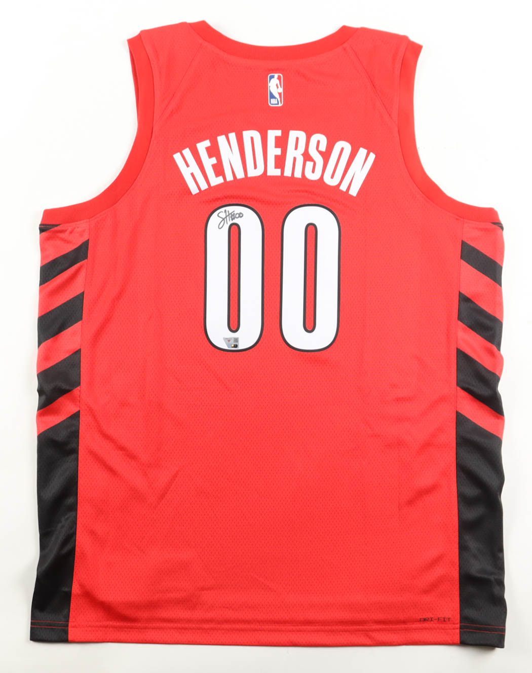 Jordan authentic jersey with everything pressed on, size 52. Hand-signed by Scoot Henderson (Portland Trail Blazers). Please note, the signature has bled.