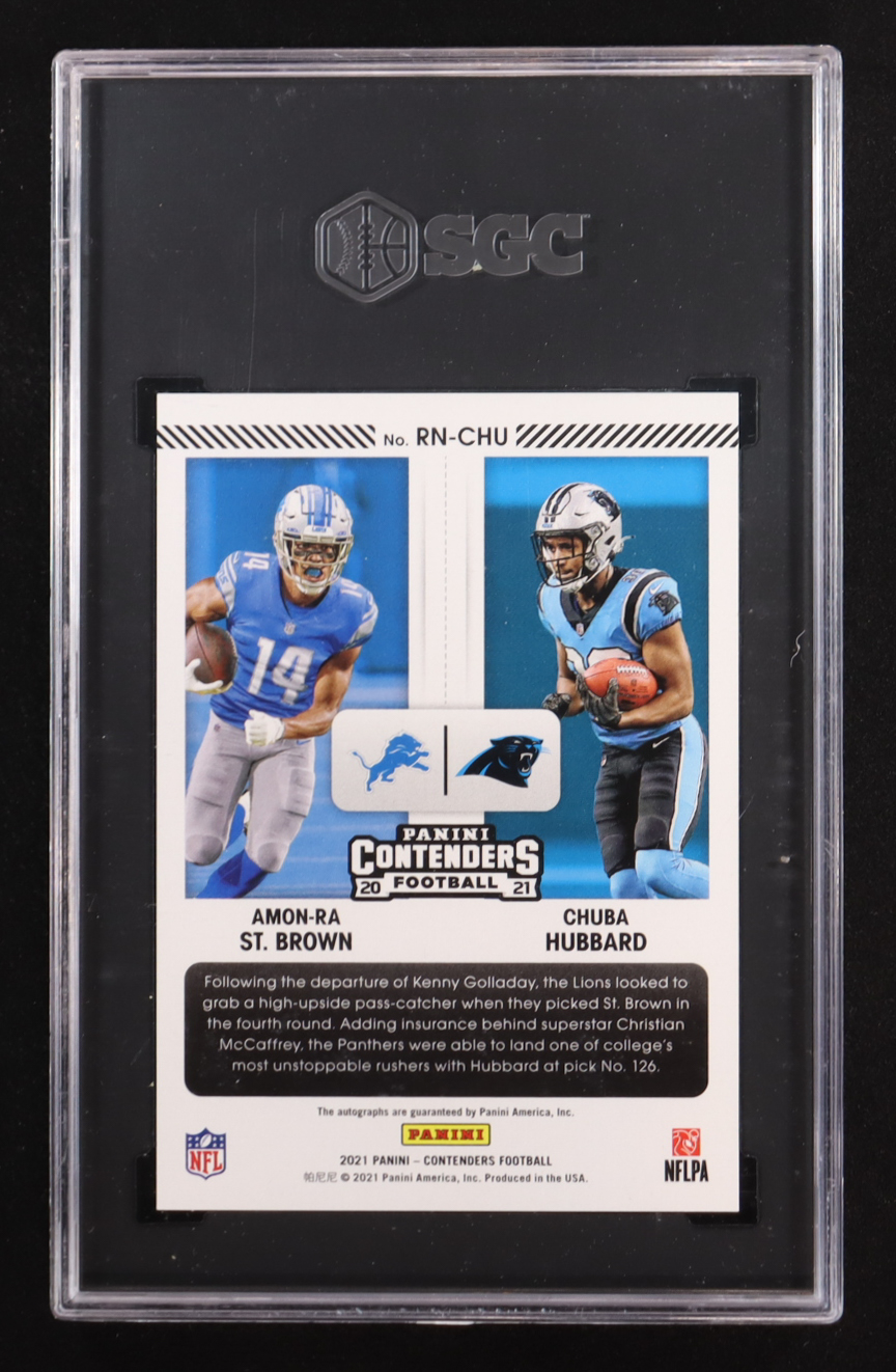 Chubba Hubbard / Amon-Ra St. Brown 2021 Panini Contenders Round Numbers Dual Autographs #RN-CHU RC #36/99 (SGC 9.5)