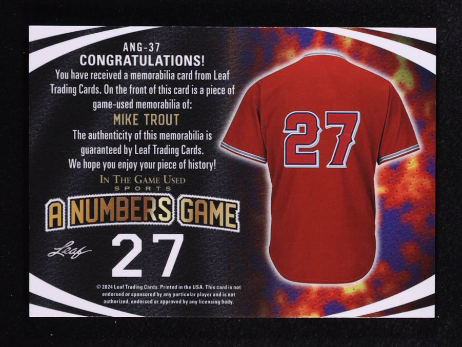 Mike Trout 2024 Leaf ITG Used Sports A Numbers Game Bat Relic Rainbow Crystal #ANG37 #30/50