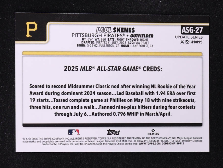 Paul Skenes 2025 Topps Update '25 All-Star Game #ASG27