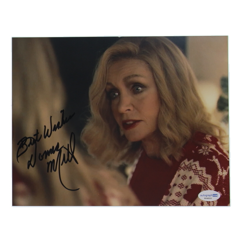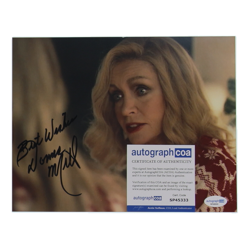 Photo measures 8" x 10" in size and has been hand-signed and inscribed by Donna Mills.