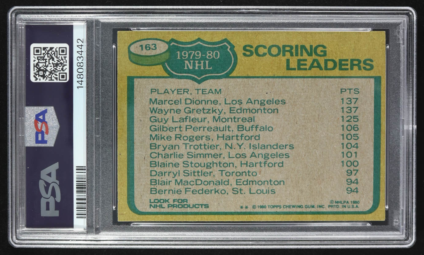 Marcel Dionne / Wayne Gretzky / Guy Lafleur 1980-81 Topps #163 Scoring Leaders (PSA 8) (MK)