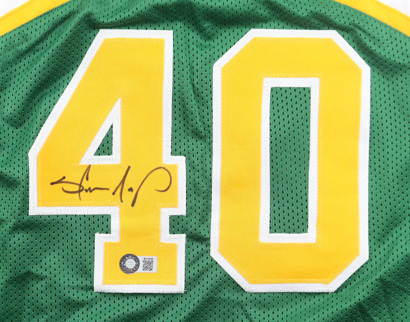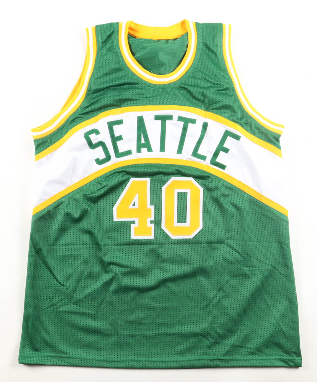 Custom jersey with everything sewn on, size XL. Hand-signed by Shawn Kemp.