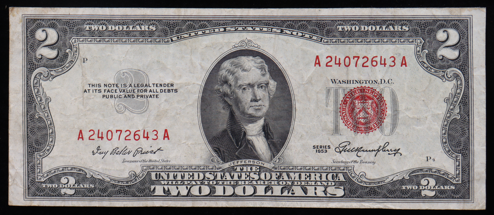 1953 United States $2 Two Dollar Legal Tender Note - Red Seal